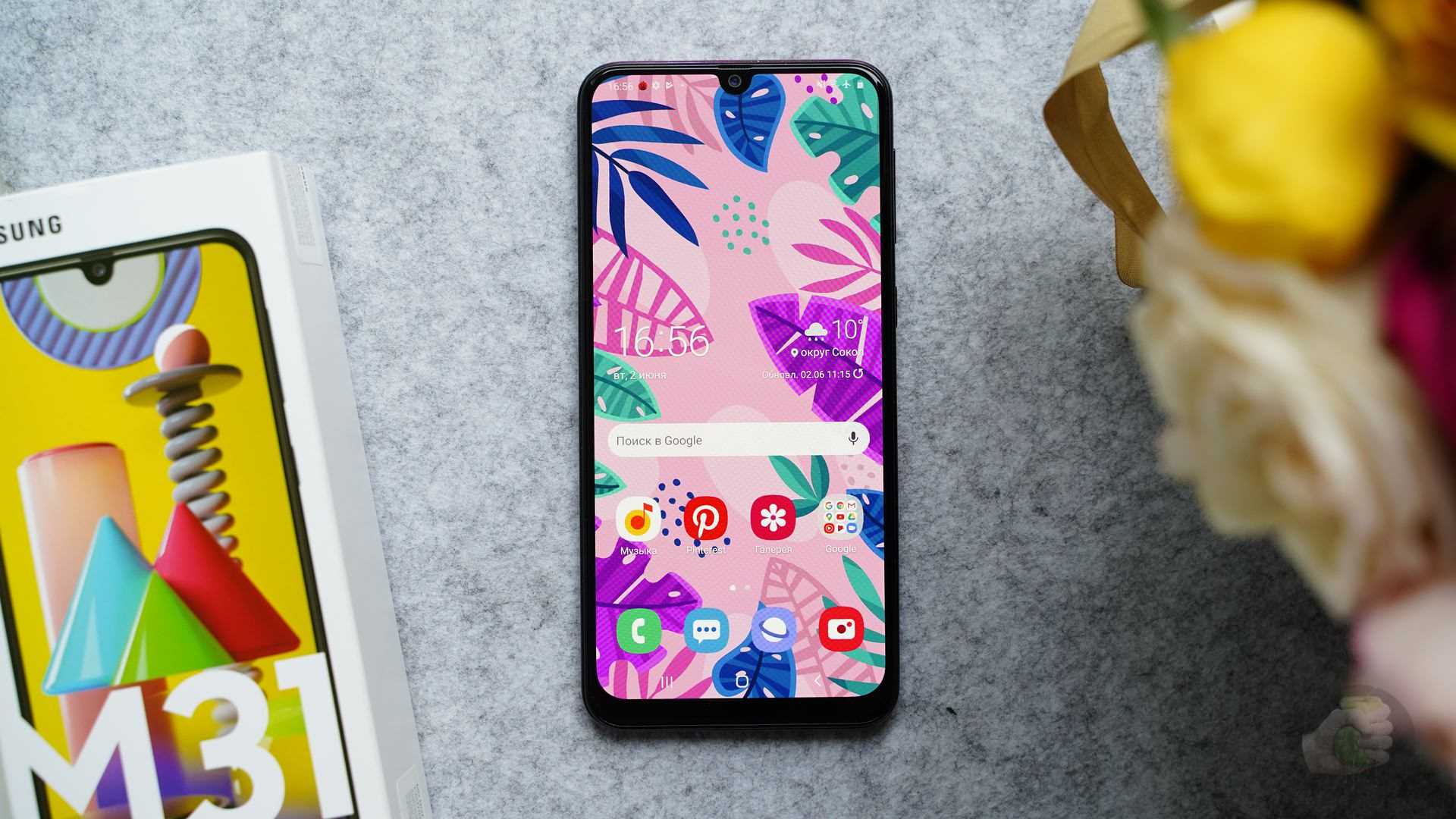 Galaxy M31 получил Super-AMOLED дисплей размером 6,4 дюйма. Он имеет разрешение 1080 x 2340 пикселей. Их плотность составляет 403 точки на дюйм. Этого достаточно, чтобы пиксели не были видны даже при чтении мелкого текста.