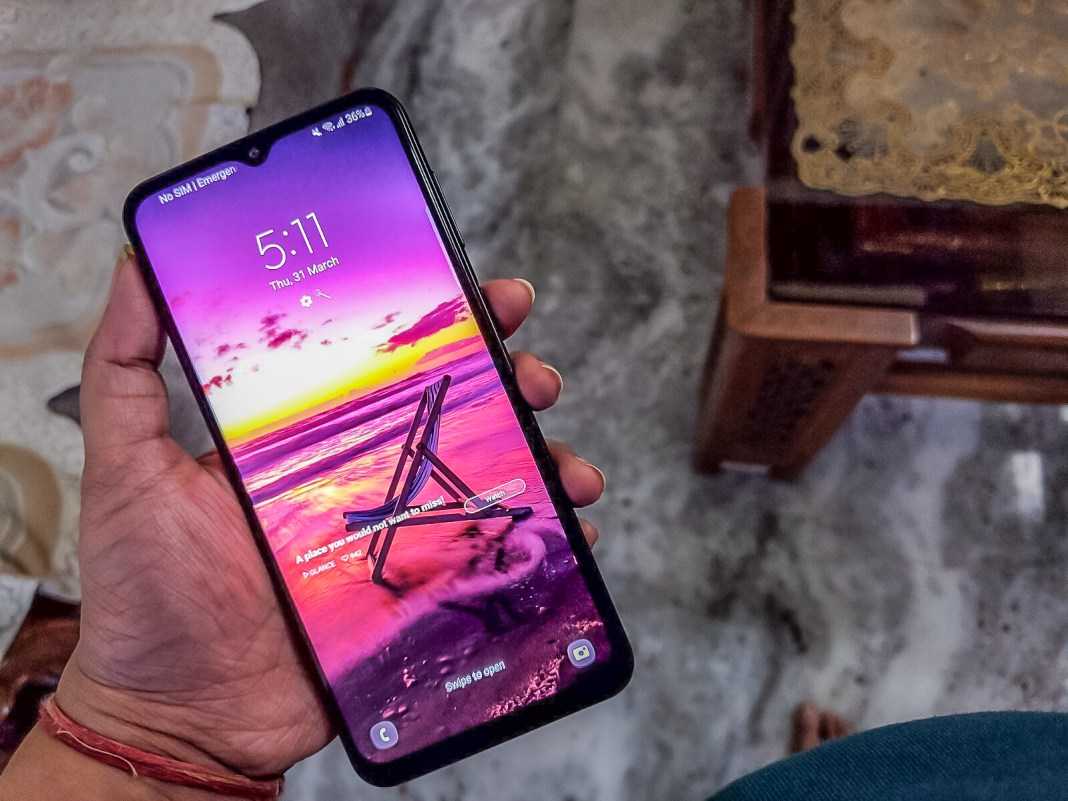 The right edge of the smartphone house has a power button cum fingerprint scanner and volume rockers, whereas the left edge of the smartphone houses a SIM tray. The bottom has USB Type-C charging port, speaker grille, and 3.5mm headphone jack. The top edge is left idle whereas the back has a simple-looking square camera module that houses quad-camera lenses. LED flash is just outside the camera module and there is Samsung branding too at the back of the smartphone.