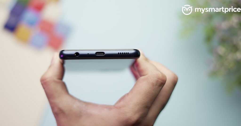 The right side of the device features volume controls and a power on/off button, which also doubles as a fingerprint sensor. It is quick to register fingerprints and unlock the phone with precision. Unfortunately, the volume controls are placed a little too high to my liking, making it difficult to reach. The left side of the device hosts the SIM slot, while the bottom comes with a single-firing speaker and a USB Type-C port.