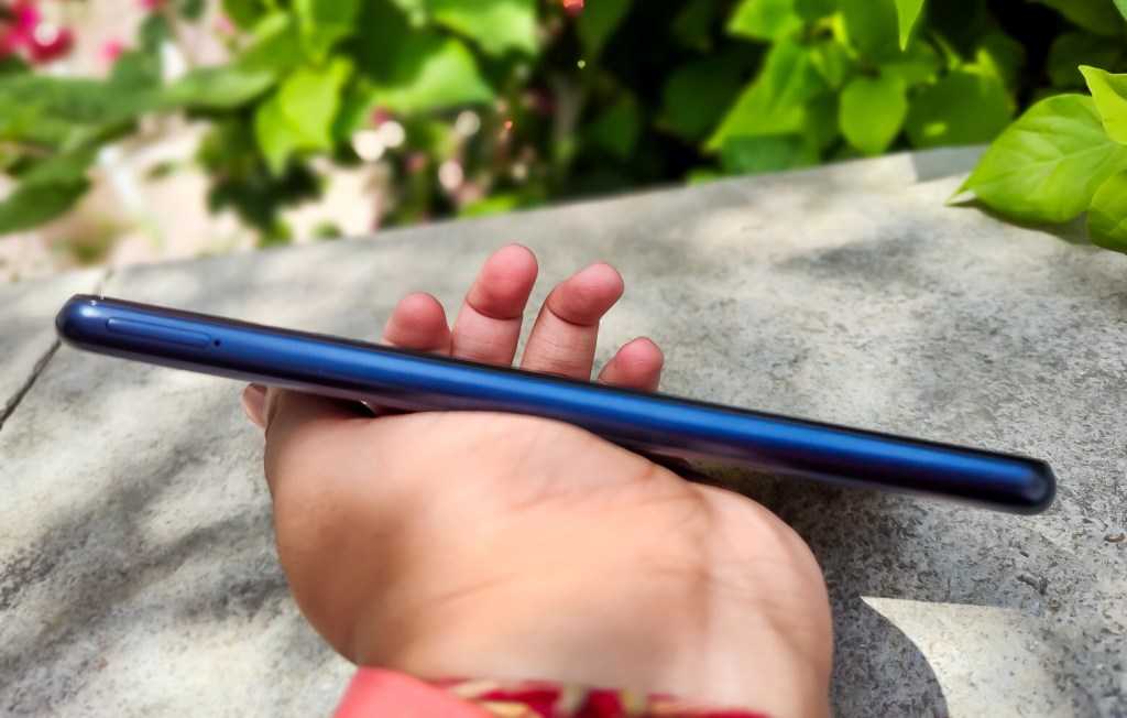 The phone is available in different colour options, and we got Deep Ocean Blue, which gives a premium look. The side panel is made of plastic, and so is the back panel. Thanks to the choice of materials, the in-hand feel is decent, if not great. On the downside, the phone is quite prone to smudges on both the front and back panels, so I would recommend using it with a cover (which is not provided in the box). The round edges give you some comfort in holding the phone, but 215 grams of heft makes it feel heavy.