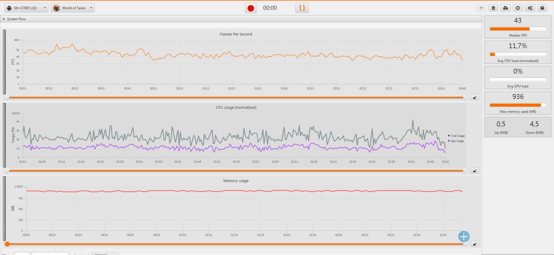 С играми больших проблем возникнуть не должно, хотя если долго играть, то все возможно. Сильные просадки кадров удалось заметить только в Fortnite при высоких, чуть ли не максимальных настройках графики. В PUBG Mobile получаем стабильные 40 FPS на графике Максимум/Ультра, но без чехла комфортно играть у меня не получается из-за постоянных случайных нажатий. В World of Tanks также все стабильно на высокой графике — 59-60 кадров в секунду, и разве что выставление дополнительных настроек на максимум приведет к просадкам примерно до 30 FPS. Все игры тестировались с помощью приложения Gamebench.