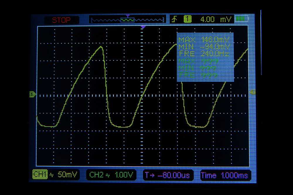 Значительная модуляция подсветки (ШИМ) проявляется при 29% яркости и ниже, когда амплитуда модуляции существенно возрастает, а частота модуляции с 59 или 118 Гц (в зависимости от выставленной частоты обновления — 60 или 120 Гц соответственно) переходит на 240 Гц. Прибор Radex Lupin в некоторых случаях показывает, что коэффициент пульсации превышает более 140%, что довольно много, учитывая, что у IPS-экранов этот показатель обычно меньше 1%. Можно предположить, что некоторые пользователи при низком уровне яркости будут наблюдать мерцание, а длительное использование экрана вызовет повышенную утомляемость, но это в теории — автор обзора не испытывает с этим ощутимых проблем. Функции DC Dimming, которая бы устранила мерцание, в настройках не предусмотрено, что характерно для смартфонов Samsung.