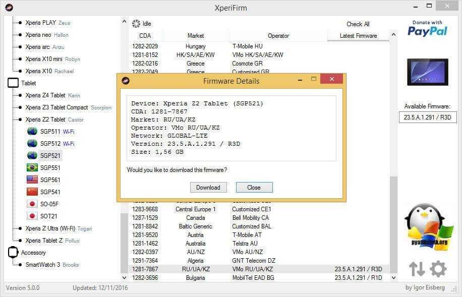Открываем XperiFirm, находим ваше устройство, выбираем прошивку под свой регион и нажимаем Download.