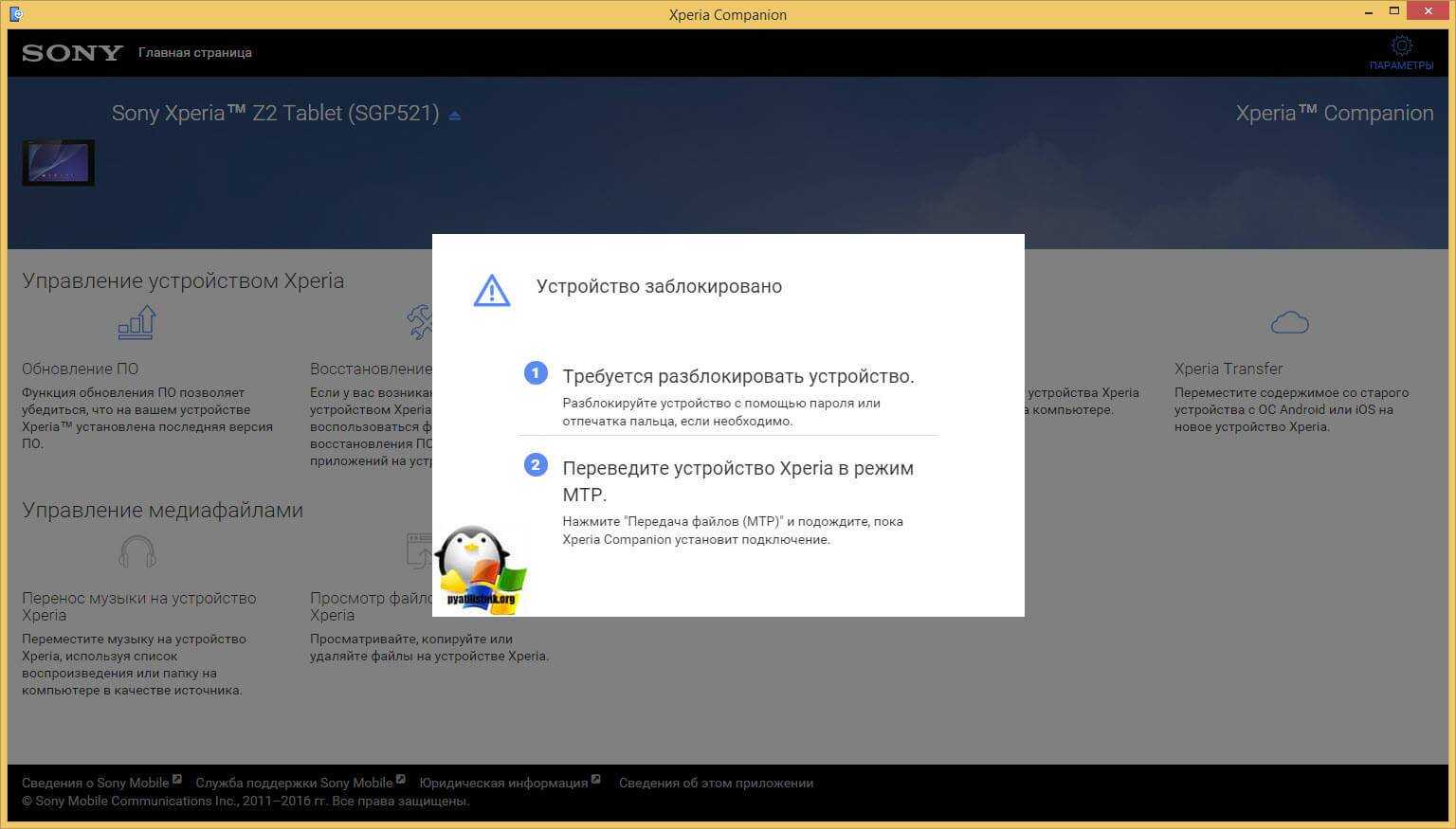 Далее приведена инструкция, как снять графический ключ Sony Xperia Z2 с помощью PC Companion.