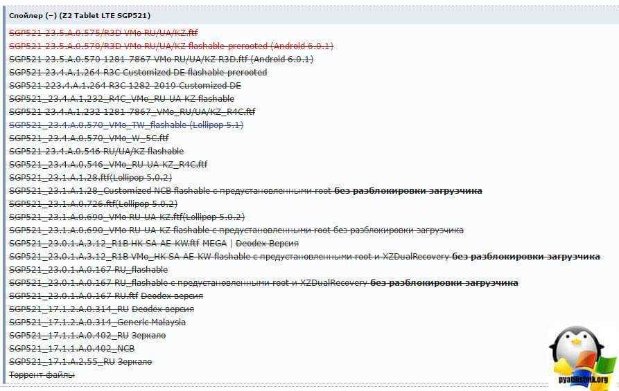 Все эти данные можно подглядеть в названии SGP521_VMo RU-UA-KZ_1281-7867_23.5.A.1.291_R3D, где Branding будет RU-UA-KZ, а Version 281-7867_23.5.A.1.291_R3D
