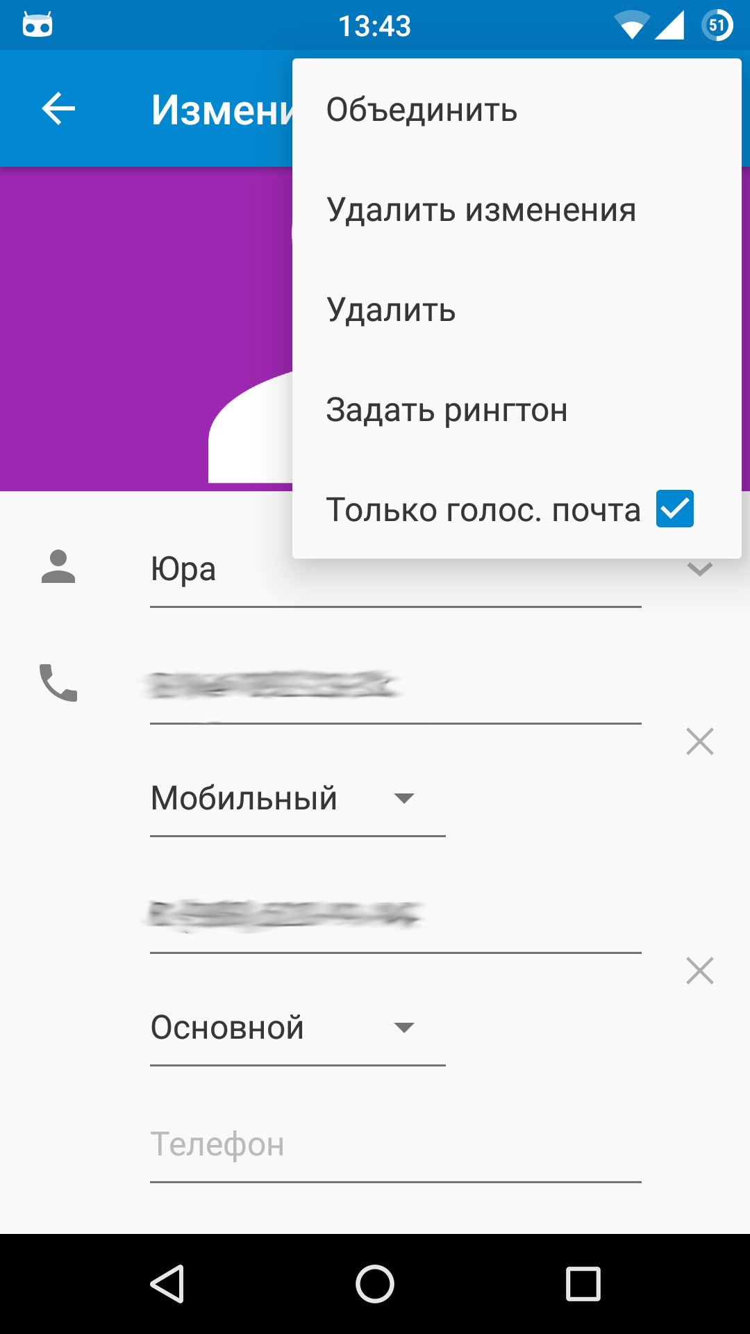 Однако блокировку можно получить и в стоковом Android, для этого достаточно просто отправить неугодных абонентов в голосовую почту. Чтобы сделать это, тапаем по нужному контакту, далее нажимаем иконку редактирования («карандаш»), далее меню и выбираем пункт «Только голос. почта». Там же, кстати, можно установить отдельный рингтон для абонента.