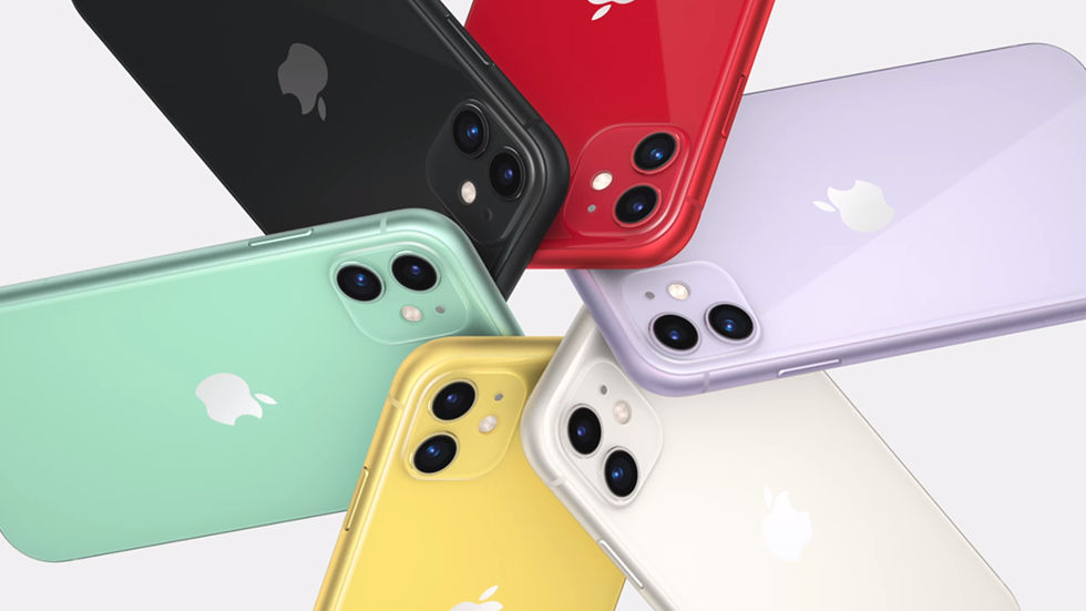 iPhone 11 представлен в черном, желтом, белом, зеленом, фиолетовом и красном цветах.