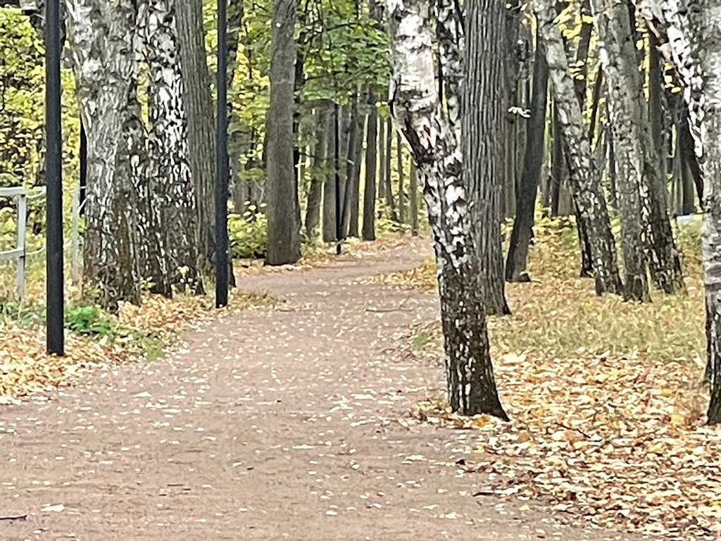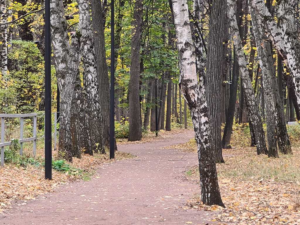Самсунг же уверенно запечатлел и листики на тропинке, и узор на деревьях, и в целом фото получилось гораздо чётче.