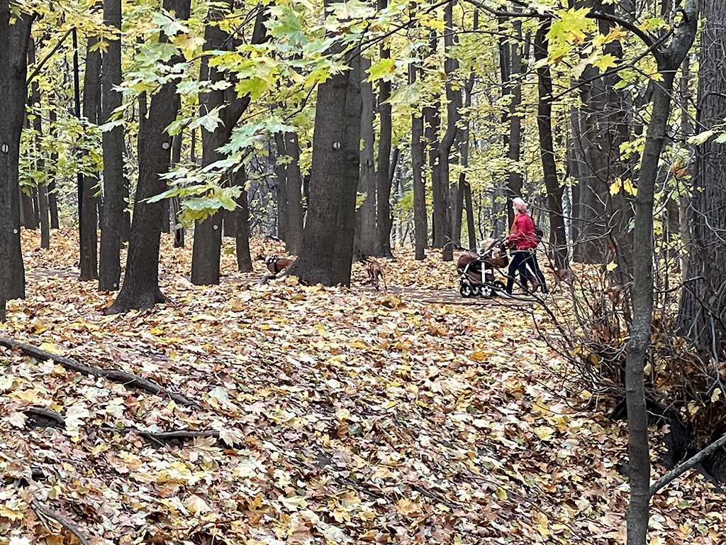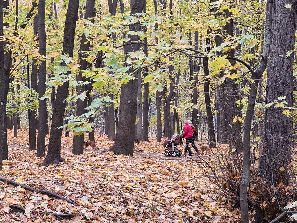 И, как по мне, оба не справились с фото гуляющих людей в окружении осеннего леса.