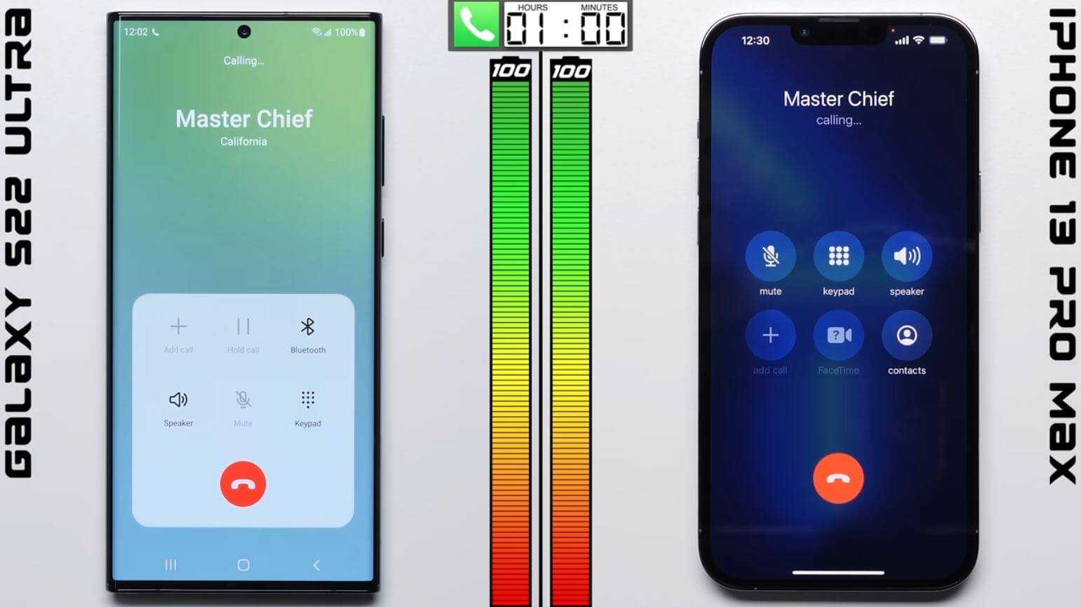 Специалисты решили повторить этот тест, использовав Galaxy S22 Ultra. Стоит отметить, что в смартфоне также остался аккумулятор на 5000 мА*Ч, а тест по-прежнему состоит из использования Гугл карт, просмотра ленты в Instagram, видео на YouTube и игр. С первых же тестов Galaxy S22 Ultra начал проигрывать конкуренту от Apple, разрядившись за час в режиме разговора на 6%. iPhone за это время потерял всего лишь 1%. В итоге новый флагман от Samsung продержался 9 часов 16 минут, а iPhone 13 Pro Max — 12 часов и 6 минут.