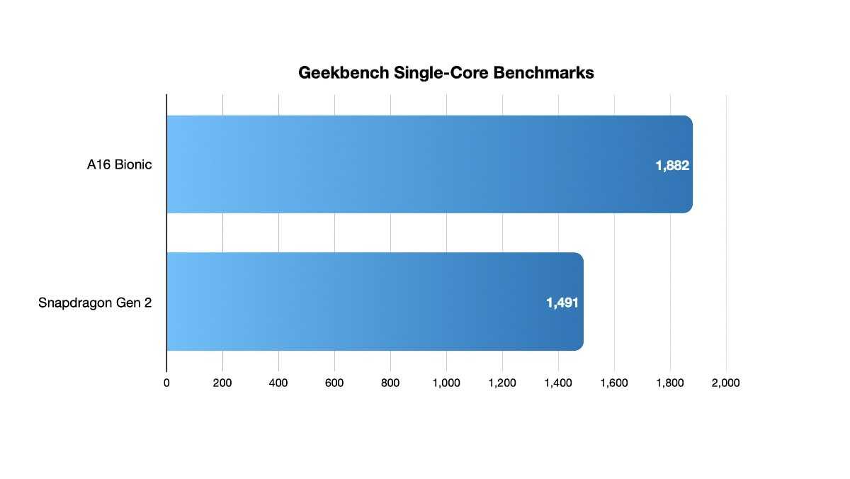 Тесты для Galaxy S23 еще не опубликованы, но декабрьские оценки процессора Snapdragon 8 Gen 2 показали, что он показал 1491 балл в одноядерной производительности и 5180 баллов в многоядерной производительности.