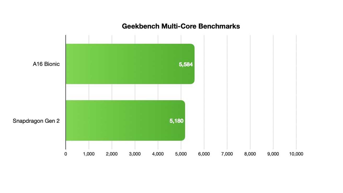 Эти оценки приближают его к A16 Bionic, хотя реальное использование даст лучшее представление о том, как он справляется с оптимизированным дизайном чипа Apple для своего программного и аппаратного обеспечения.