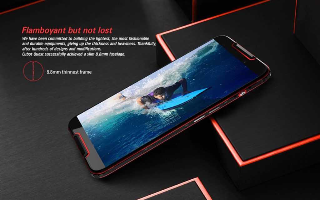 Стильный дизайн телефона подчеркивает его спортивность. Телефон одновременно грубый и изящный, дает ощущение силы и превосходства. Корпус, несмотря на солидный внешний вид, имеет толщину всего 8.8 мм. Красная окантовка с белой выгравированной надписью Sport Phone подчеркивает стремительность счастливого владельца Cubot Quest. На тыльной стороне телефона изображены пиктограммы бегущего человека, велосипедиста и байдарочника. Кубот Квест — это поистине универсальный спортфон.
