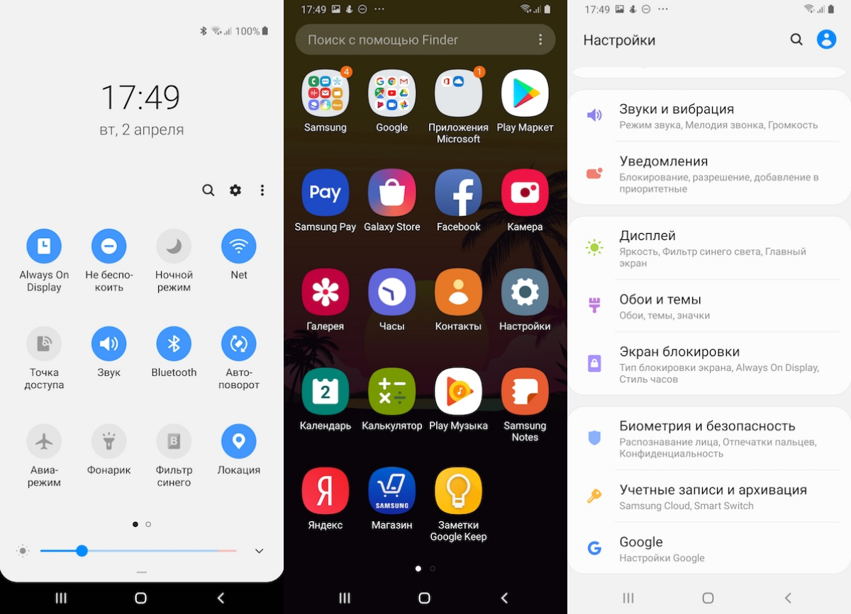 По части качества изображения всё отлично: это яркий Super AMOLED, картинка на уровне старых флагманов S-серии. Напомню, что если выставленные по умолчанию параметры дисплея не устраивают и цветастая картинка режет глаз, то в меню можно выбрать более естественную передачу тонов.