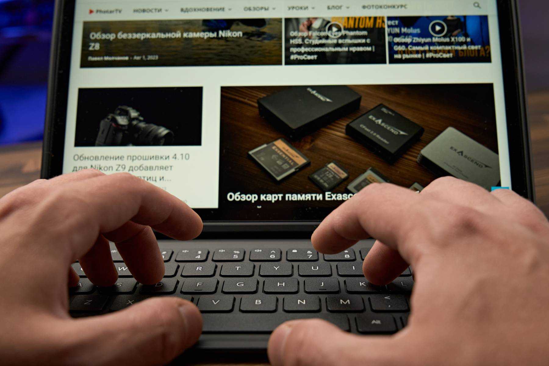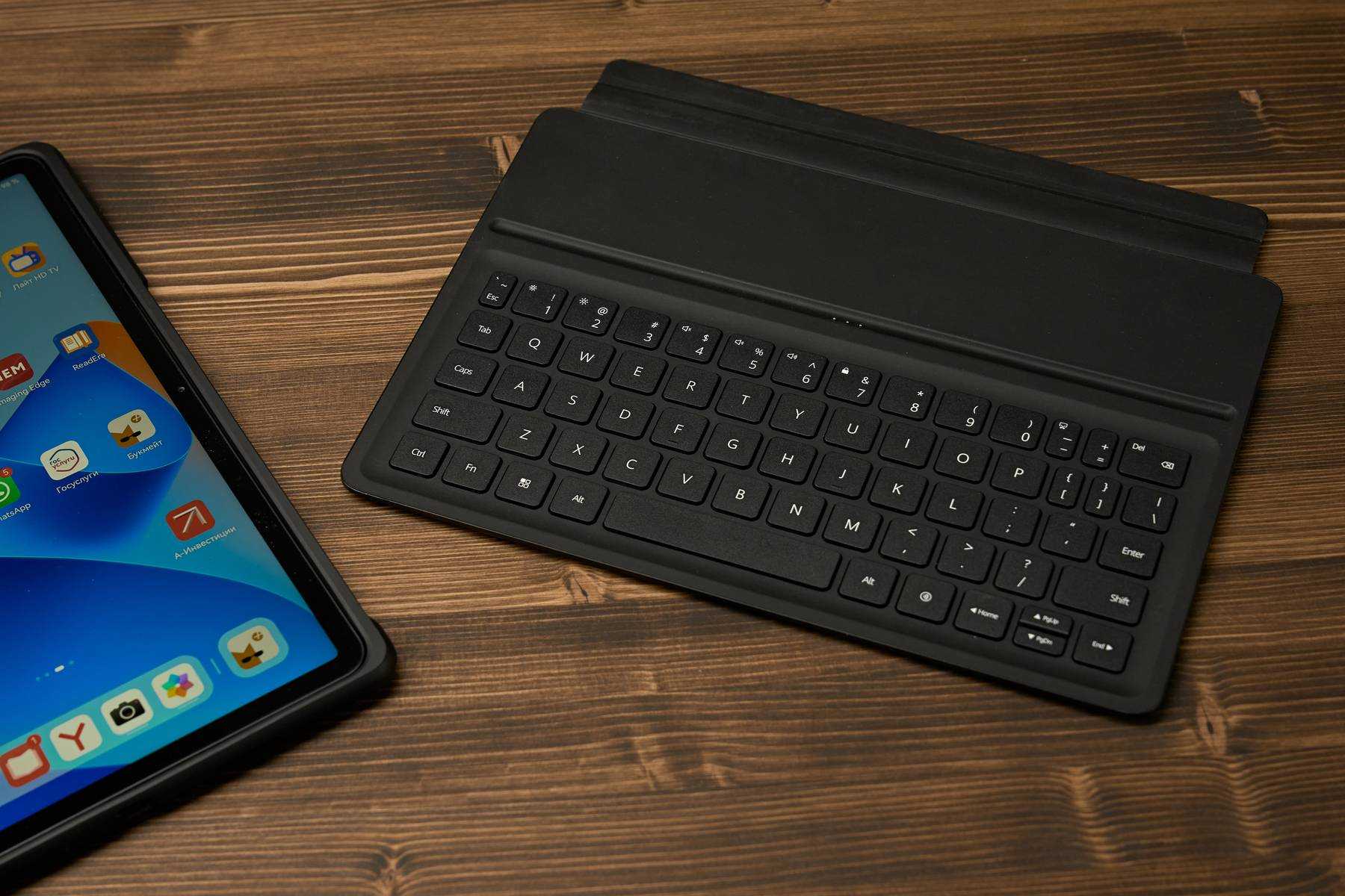 Клавиатура беспроводная, с большими клавишами и комфортным ходом, отлично защищает экран, крепится на магнитах и может работать даже когда отсоединена. Всё это, конечно, здорово. Но если, например, вы откидываете клавиатуру назад и взаимодействуете с се́нсорным экраном, физическая клавиатура не отключается, соответственно, переодически происходят случайные нажатия. И это, увы, не всё. Клавиатура может заряжаться только от планшета и её нельзя принудительно выключить, чтобы не сажать встроенный аккумулятор. А если клавиатура полностью разрядилась, то ей непременно требуется подключение к планшету, при этом беспроводной зарядки нет. Такие вот нюансы и замечания.