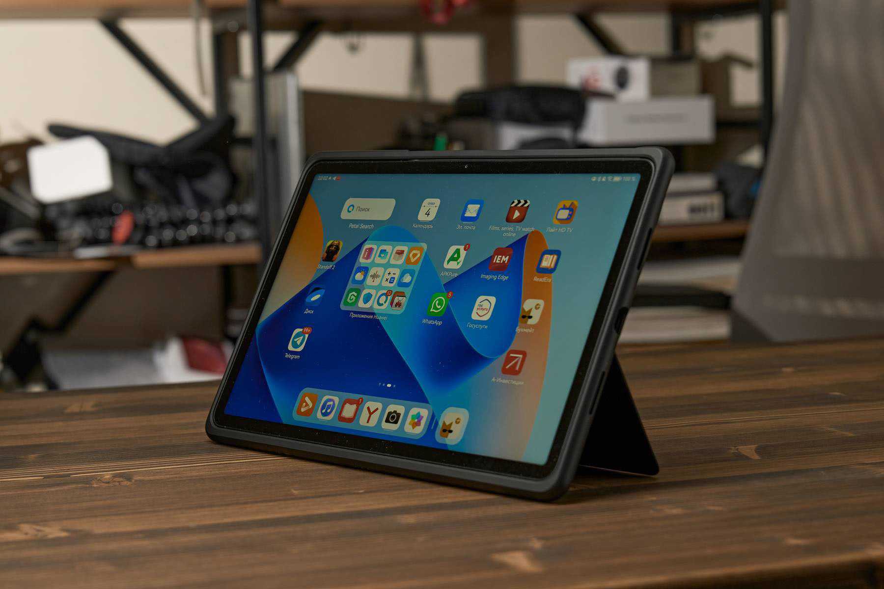 Ну и, конечно же, дисплей! Экран с достаточно тонкими и одинаковыми рамками с полезной площадью 86%, закруглёнными углами придают планшету премиальный вид. Дисплей тут добротный! Это IPS-матрица с диагональю 11 дюймов и разрешением 2560х1600 пикселей с поддержкой частоты обновления до 120 Гц. Плотность пикселей высокая, хорошая цветопередача, работать одно удовольствие! Есть важные программные плюшки в виде защиты зрения, режима электронной книги и т. д.