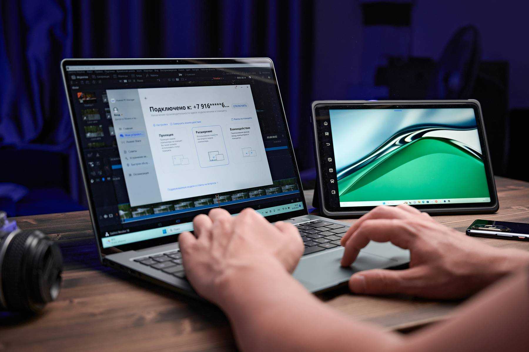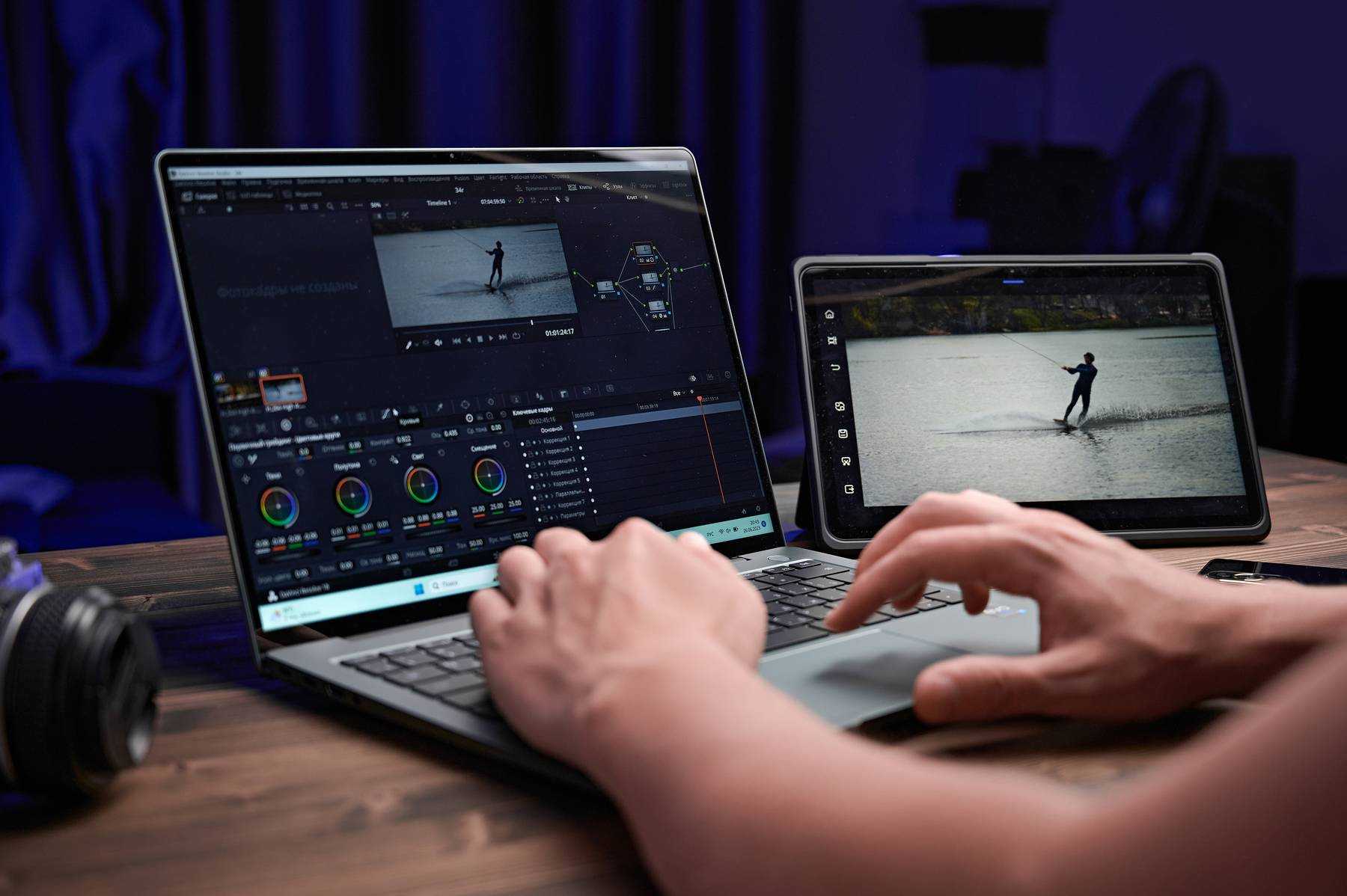 А вот подключение в качестве мониторинга, на мой взгляд, идеальное решение – выводим предпросмотр видео или фото (практически любая программа даёт такую возможность), а все манипуляции производим на компьютере. Остаётся лишь одна загвоздка – у Huawei на текущий момент нет столь производительного ноутбука с дискретной видеокартой, который бы смог дать комфортную работу для более-менее серьёзного монтажа (4К, эффекты, цветокоррекция) или пакетной обработки тяжёлых фотографий (60-100 Мп).