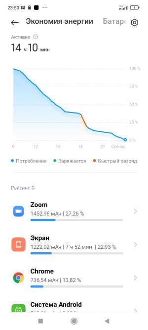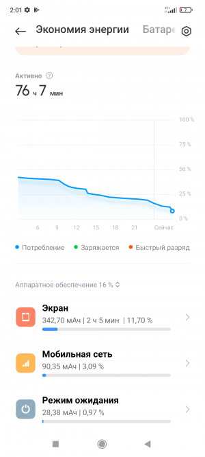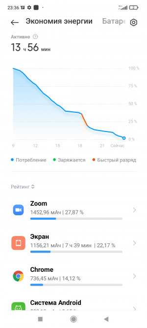 Ёмкость аккумулятора составляет 5000 мАч. Автономность хорошая: в день очень активного использования мне удалось «выбить» почти 8 ч экрана (включая ~5 ч Zoom и скачивание Genshin Impact со включенным экраном), а до этого прожить на одном заряде три дня (около 2 ч экрана каждый день). В более средних сценариях девайс легко проживает два дня. Комплектный зарядник заряжает Xiaomi 11T с 1% до сотни примерно за 40 минут, то есть действительно очень быстро. Но только ни в коем случае не заряжайте выключенный телефон: пока его не включишь, быстрая зарядка не активируется, и он будет набирать меньше процента в минуту. Почему? Да кто бы знал.