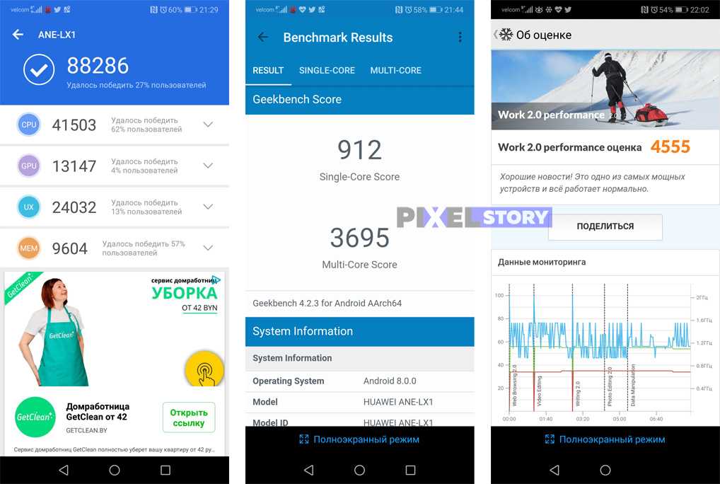 По моим ощущениям, P20 Lite прекрасно справляется с повседневными задачами. Приложения запускаются быстро, рабочие столы крутятся без подтормаживаний, устройство не нагревается.