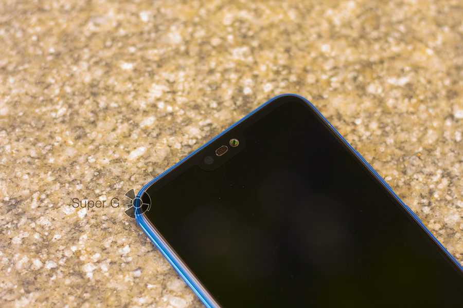 Спереди нас ждёт привычный элемент – козырёк в верхней части экрана. Оправдывает его то, что он очень узкий. Рамки сверху и по бокам тоже маленькие, а вот нижнюю хотелось бы видеть тоньше. Но куда-то же надо было поместить название компании. В конце концов!