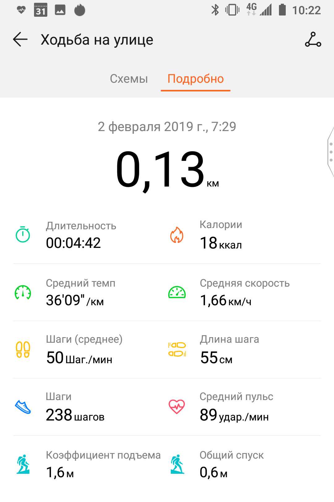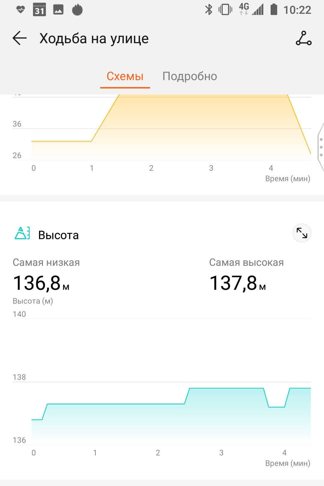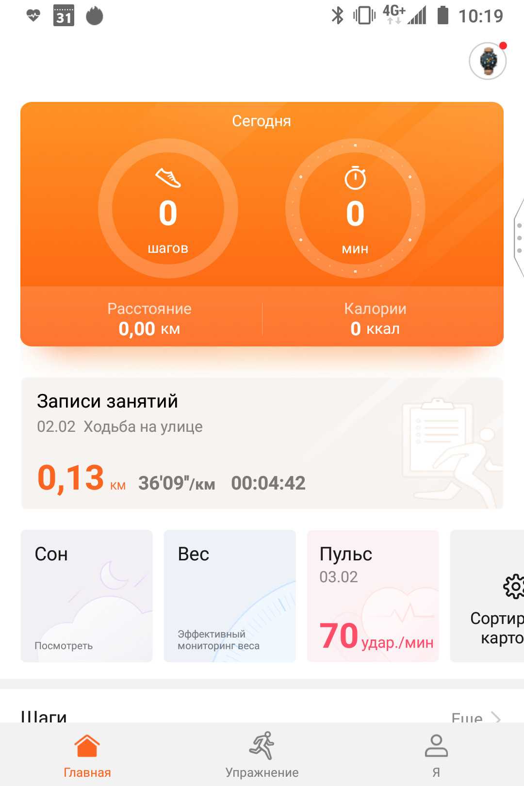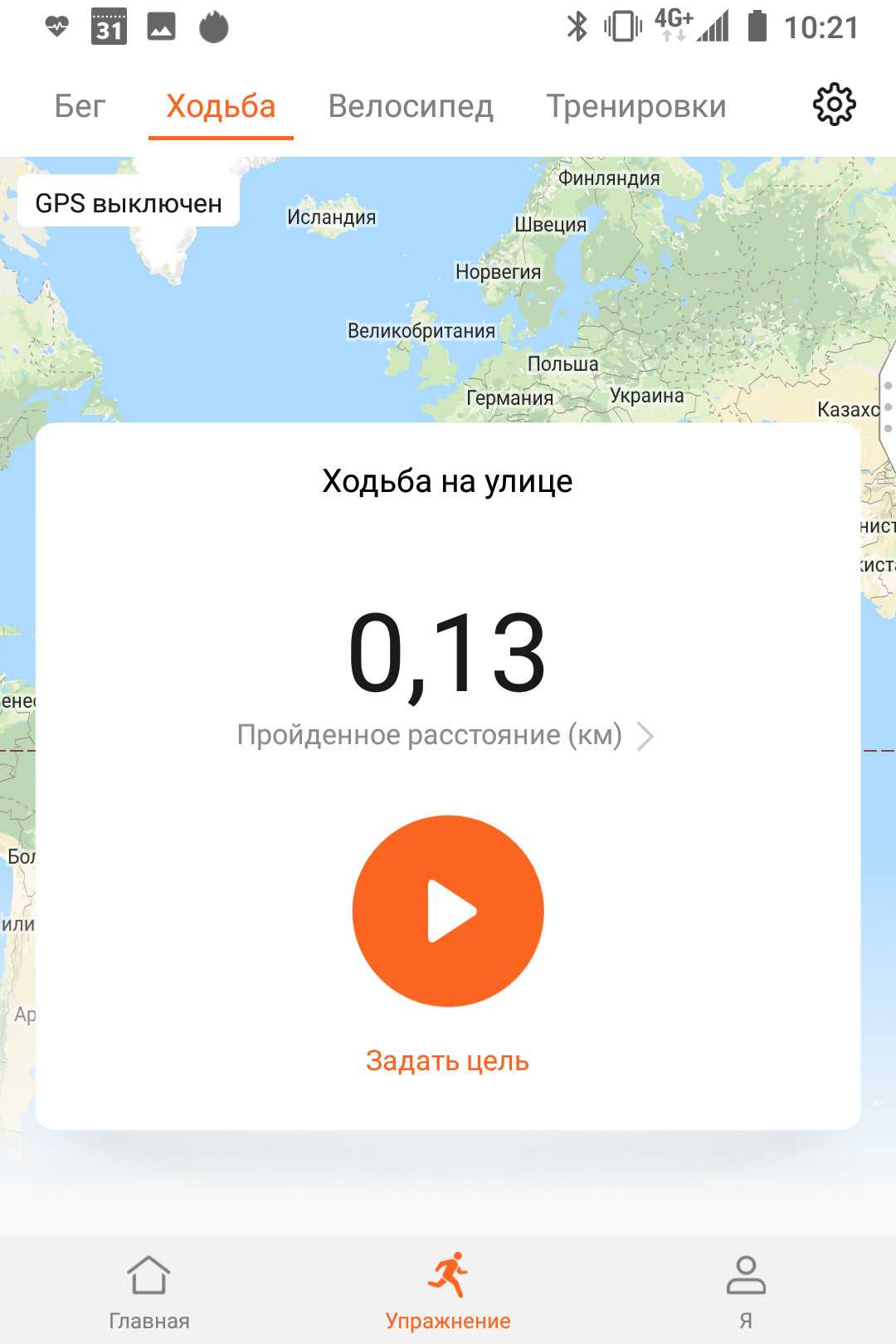 Для сопряжения гаджета со смартфоном применяется приложение Huawei Health. Описывать его также подробно, как софт часов, нет смысла – лучше поделится скриншотами, там все и так понятно. Заметим только несколько моментов, связанных со вкладкой «Упражнение», где хранятся записи Ваших проводимых тренировок. Первое: если во время тренировок использовать GPS, то можно построить карту своих перемещений. Второе: на Huаwei Watch GT тоже можно просматривать результаты тренировок и без самого мобильного гаджета, а вот на Bаnd 3 Pro они открываются ровно один раз, по окончании тренировки. И третье: набор записываемых данных сильно зависит от типа выбранной тренировки, так как девайсы умеют замерять много специфичных показателей. Например, для плавания считается SWОLF, для бега на улице уже VO2 max.