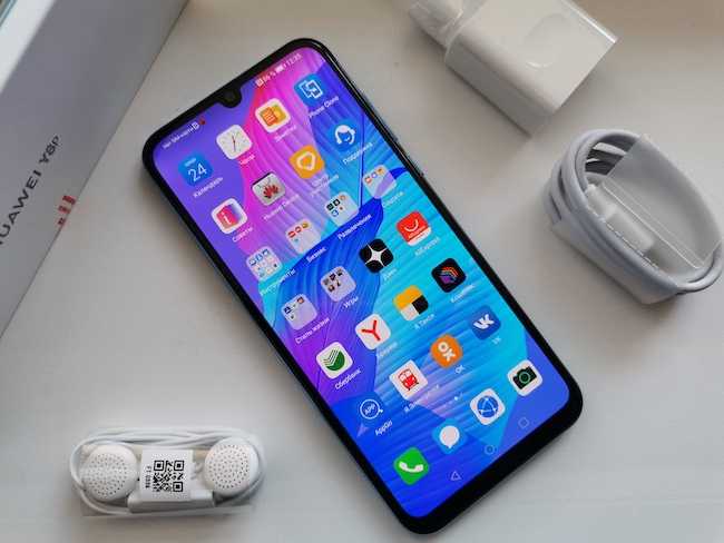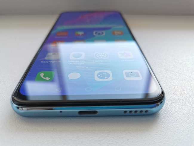 Лицевая сторона смартфона практически полностью отведена под экран. Для этого разработчики пошли на использование каплевидного выреза в верхней части дисплей. В этом вырезе располагается фронтальная камера. Динамик разместился на верхней кромке над камерой. Защитное стекло получило олеофобное покрытие. Работает оно весьма качественно. Отпечатки и следы от использования хоть и появляются, но удаляются без особого труда. Края задней поверхности смартфона немного загнуты. Благодаря такой конструкции мобильник удобно держать в руках. А вот класть Huawei Y8p на поверхности под углом не рекомендуем. Глянцевая панель начинает скользить, и телефон начинает съезжать.