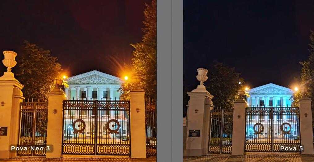Единственное отличие в цветокоррекции: у Pova 5 баланс белого зачастую правильный, а цвета немного насыщеннее и приятнее. В Pova Neo 3 нередко алгоритмы уводят цвета в красный канал.