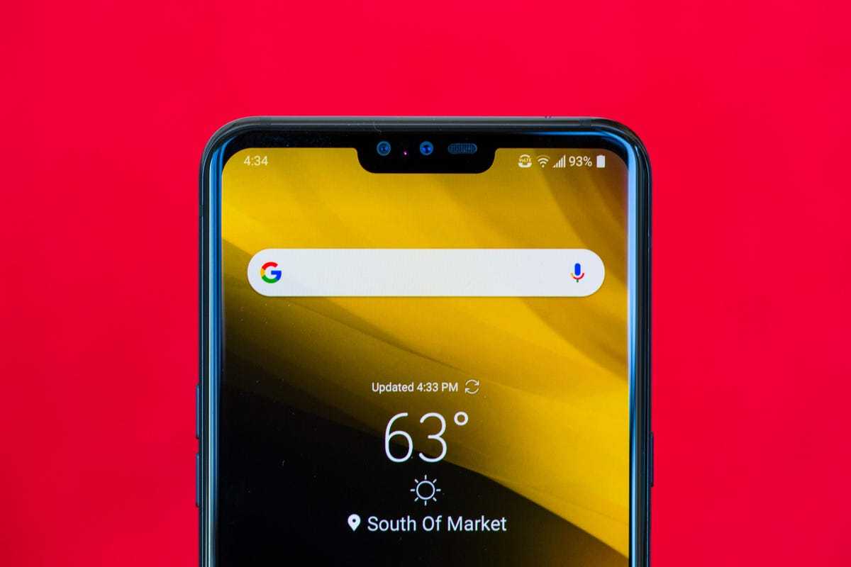 Как ни странно, LG пошла со слезоточивым надрезом, чтобы освободить место для камеры для селфи. Насечки стали устаревшим выбором дизайна, и я бы предпочел увидеть вырез для дырокола для камеры. Более того, программное обеспечение LG New Second Screen, которое позволяет настраивать цвета фона панели уведомлений (и, следовательно, стирать метки), не работает, когда телефон установлен в темный режим. Этот удивительный выбор означает, что выемка всегда видна в темном режиме. Да ладно LG.