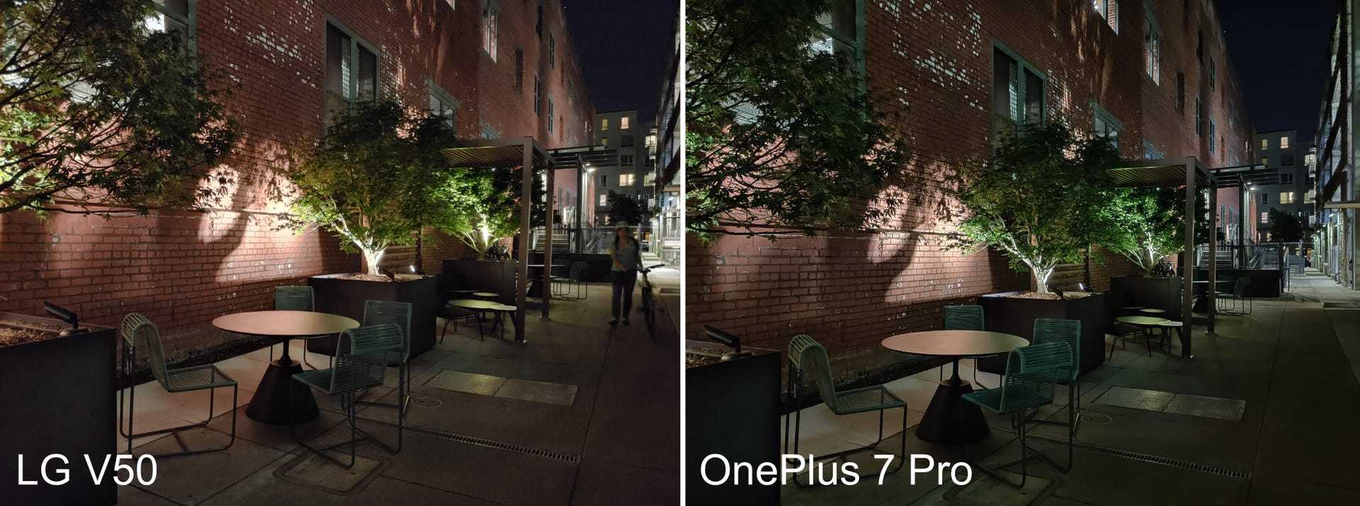Though the V50’s lowlight photo is «brighter,» I still prefer the OnePlus 7 Pro’s picture because objects are clearer.