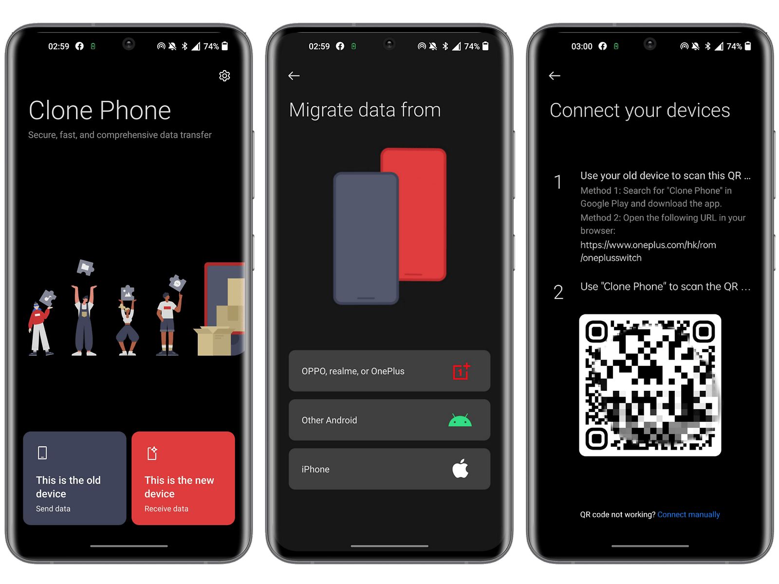 Это действие должно производиться среди первых. Как и у Smart Switch от Samsung, цель функции Clone Phone состоит в переносе данных со старого смартфона на новый аппарат OnePlus. Эта не та же программа, что Huawei Phone Clone.