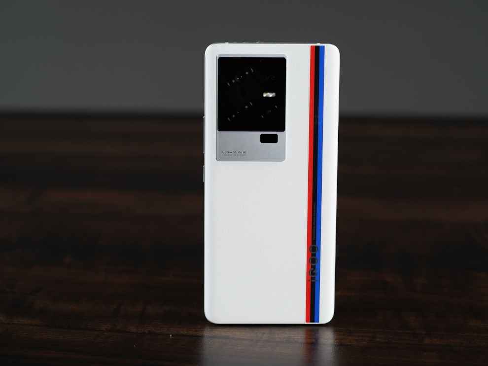 The iQOO 11 has arguably the least dramatic design. There is a flat hole-punch screen up front, and a faux leather back panel, with BMW M Motorsport racing stripes. These blue and red racing stripes have a glossy finish, and to add to the detail, you can see a carbon-fibre-like pattern inside the racing stripes upon looking closely. Very cool attention to detail. The rectangular camera cutout is placed in the top-left corner, which also has a two-tone colour scheme with both grey and black panels. The top and bottom of the aluminium frame are flat, which allows users to make the smartphone stand on any flat surface.