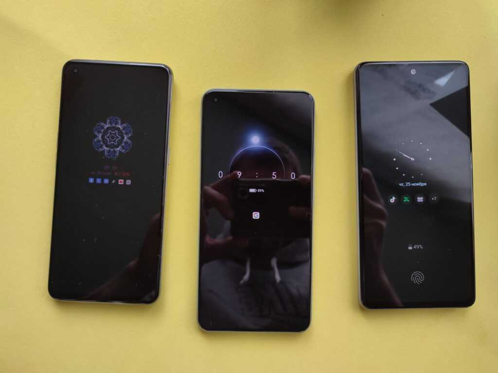 AOD в realme GT Master (слева), Xiaomi 11 Lite 5G NE (по центру), Samsung A72 (справа)