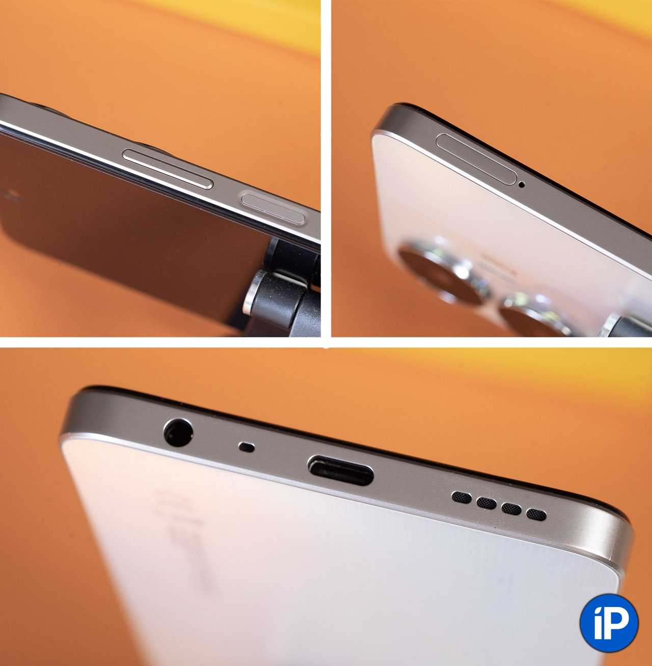 На правой грани размещена качелька громкости и кнопка включения смартфона, в которую встроен сканер отпечатка пальца. На левой грани можно найти лоток для SIM-карты, а на нижней – разъём для зарядки USB-C, решетку динамика и 3,5 мм вход для проводных наушников.