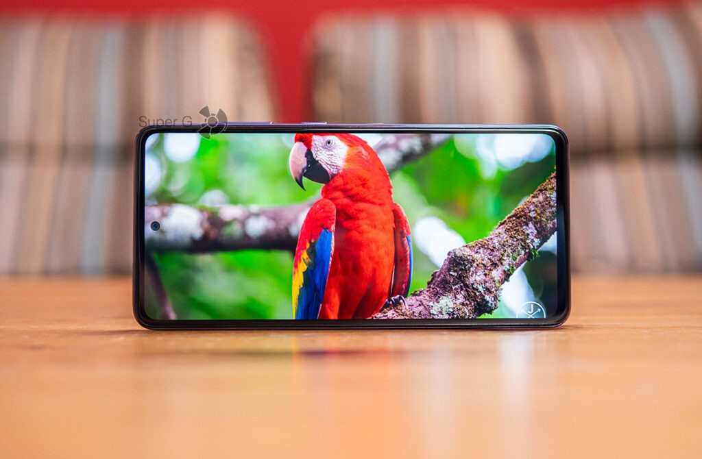 Телефон имеет плоский 6,5-дюймовый Super AMOLED дисплей, показывающий картинку в разрешении 1080х2400 точек (405 PPI). Экран занимает примерно 85% площади телефона. Рамки не слишком широкие (за исключением нижней), поэтому создается впечатление, что дисплей все же больше заявленных значений.