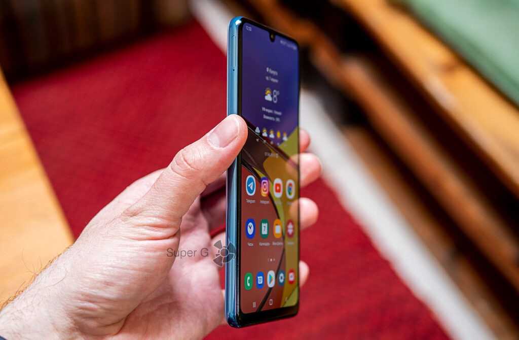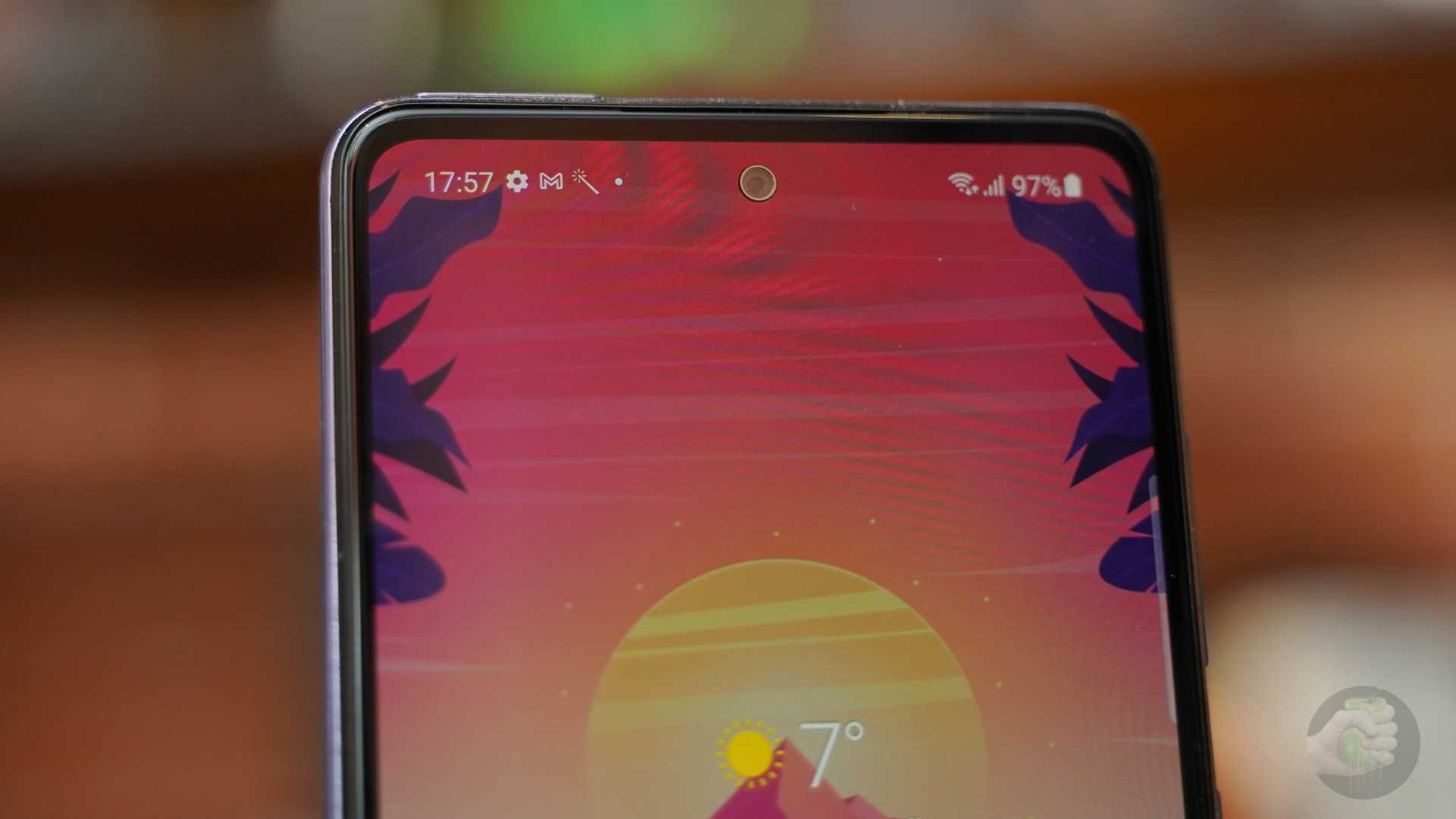 Отверстие фронтальной камеры аккуратно расположено по центру, никаких вырезов. В этом плане среднеклассники смотрятся не хуже более дорогой S-серии. Дисплей со слегка закруглёнными краями — не будет трудностей с наклейкой защитного стекла или плёнки.