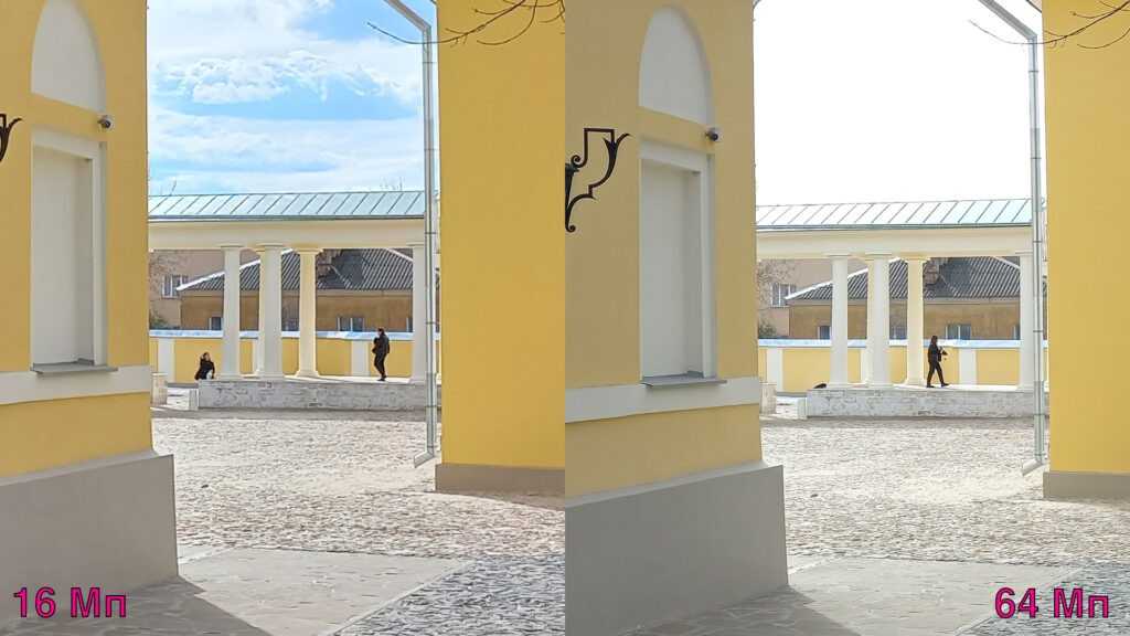 Относительно прошлогоднего Galaxy A51 камера стала лучше. Во-первых, используется новый более крупный сенсор на 64 Мп. Во-вторых, в смартфоне среднего класса наконец-то появилась оптическая стабилизация. Если хочется делать снимки в максимальном разрешении, тогда этот режим нужно вручную выбрать в параметрах телефона. По умолчанию задан 16-Мп режим: качество отличается не очень сильно, но если вам нужна повышенная детализация, то можно переключиться на 64 Мп. Кроме того, в этом режиме можно пользоваться двукратным цифровым зумом с умеренной потерей в качестве. При желании можно и больше выкрутить, но снимки совсем так себе получатся.