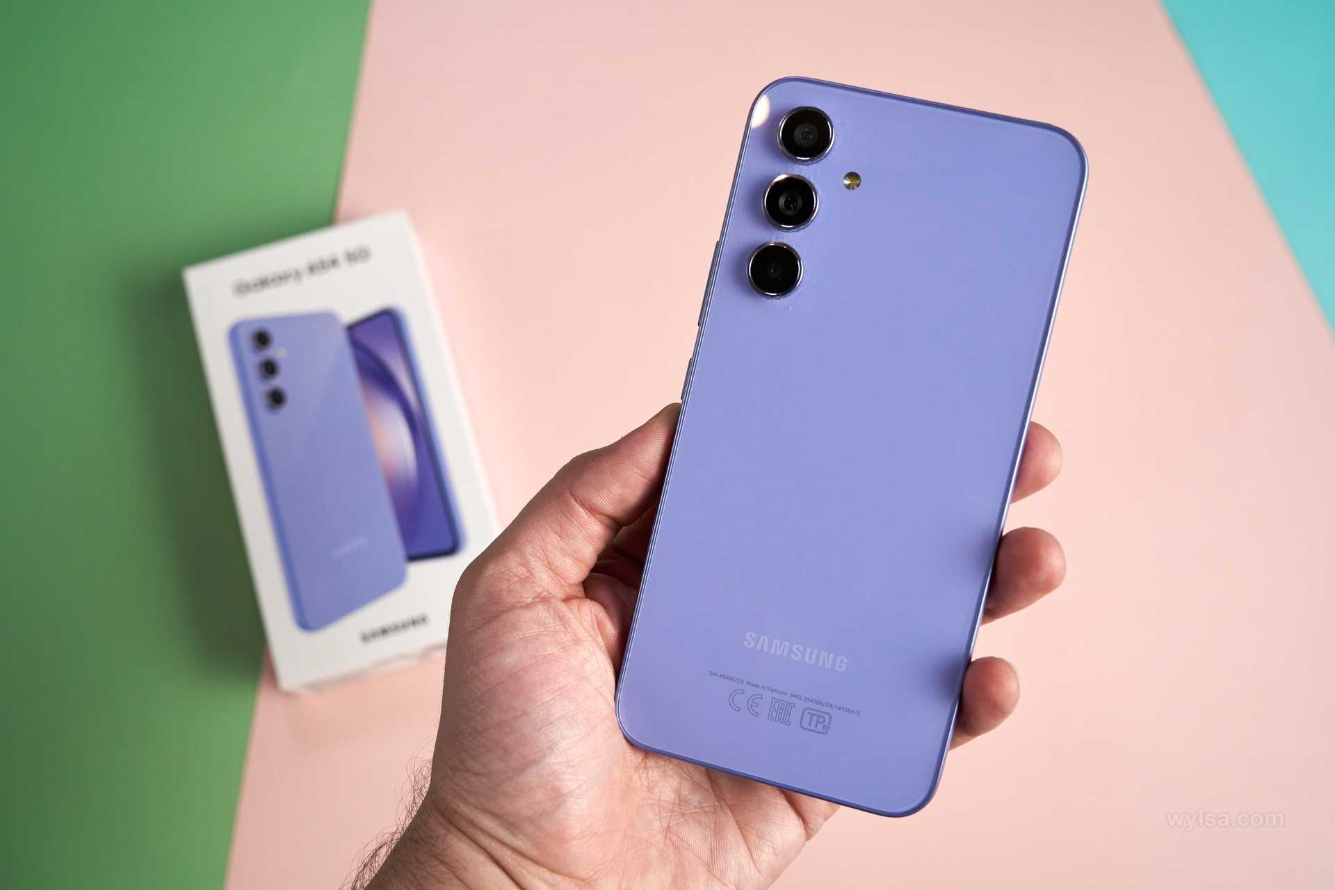 Мы начали пользоваться A54 через несколько дней после его демонстрации на предварительном показе для прессы, а компания Samsung прислала нам устройство в фиолетовом цвете «Awesome Violet», изображенное в этом обзоре, сразу после официального анонса телефона.