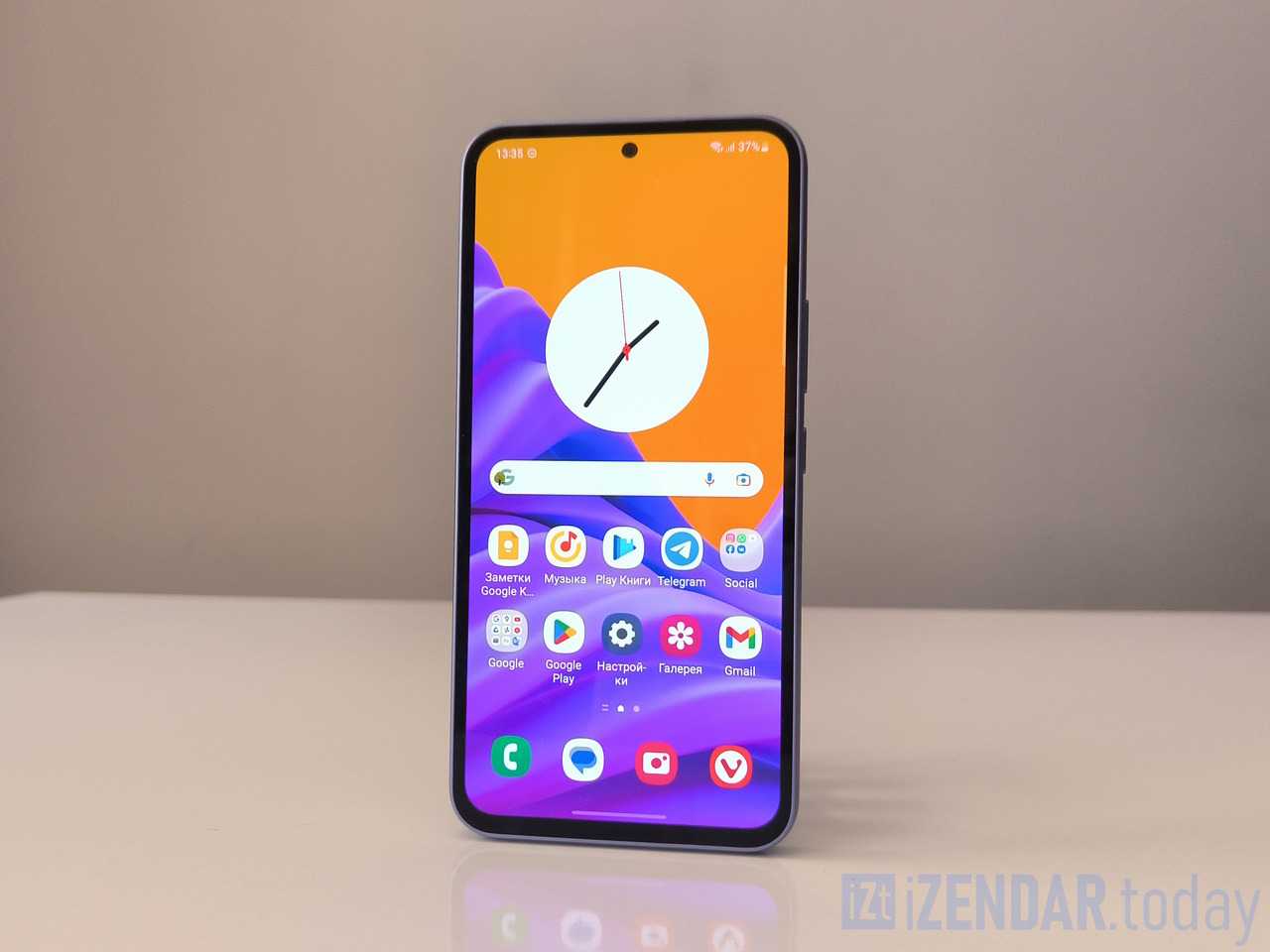 При желании можно покритиковать устройство за не самые тонкие в классе рамки, но хоть вырез для фронталки сделан аккуратно и красиво. А не как в Galaxy A34, где прослеживается «бюджетный» дизайн.
