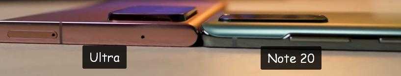 По лоткам разница есть. В Note 20 Ultra он комбинированный под 2 сим-карты или Sim + microSD. В Note 20 – только под 2 сим-карты (карта памяти не поддерживается).