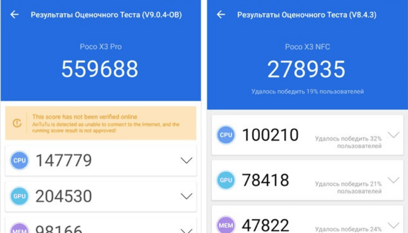 POCO X3 Pro и POCO X3 NFC. Результаты теста AnTuTu