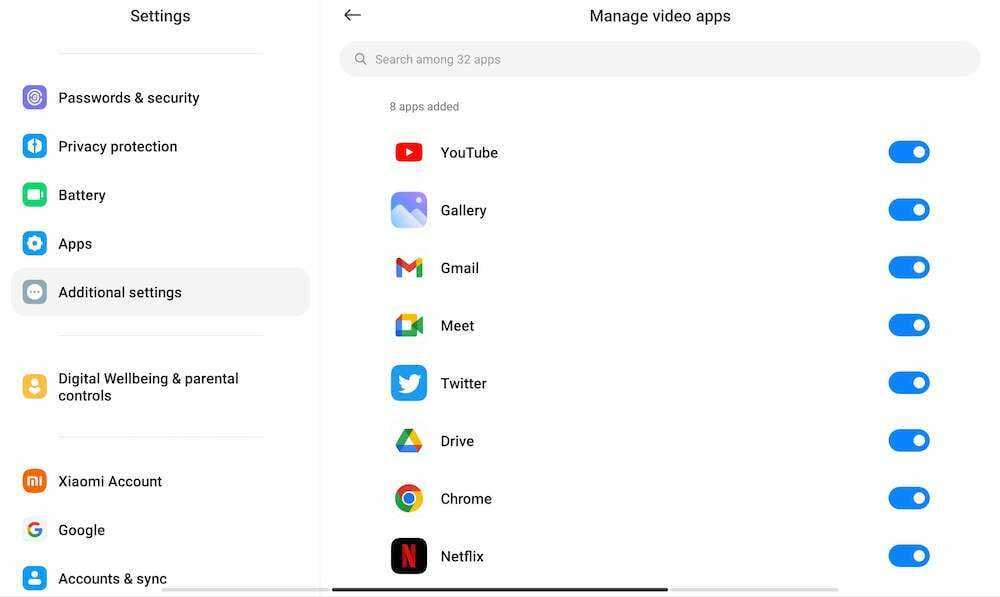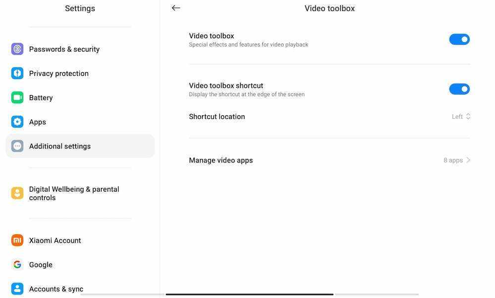 Одной из самых крутых функций Xiaomi Pad 6 является набор инструментов для работы с видео, который позволяет настраивать качество просматриваемого видео, записывать экран, делать скриншоты и делать многое другое. Все, что вам нужно сделать, это провести пальцем по крошечной полосе, которая появляется в верхнем левом углу, чтобы получить доступ к этому набору инструментов. Однако в большинстве приложений вы можете не видеть набор инструментов для работы с видео. Это потому, что он включен по умолчанию только на YouTube. Чтобы получить доступ к панели инструментов для работы с видео из других приложений, выполните следующие действия: