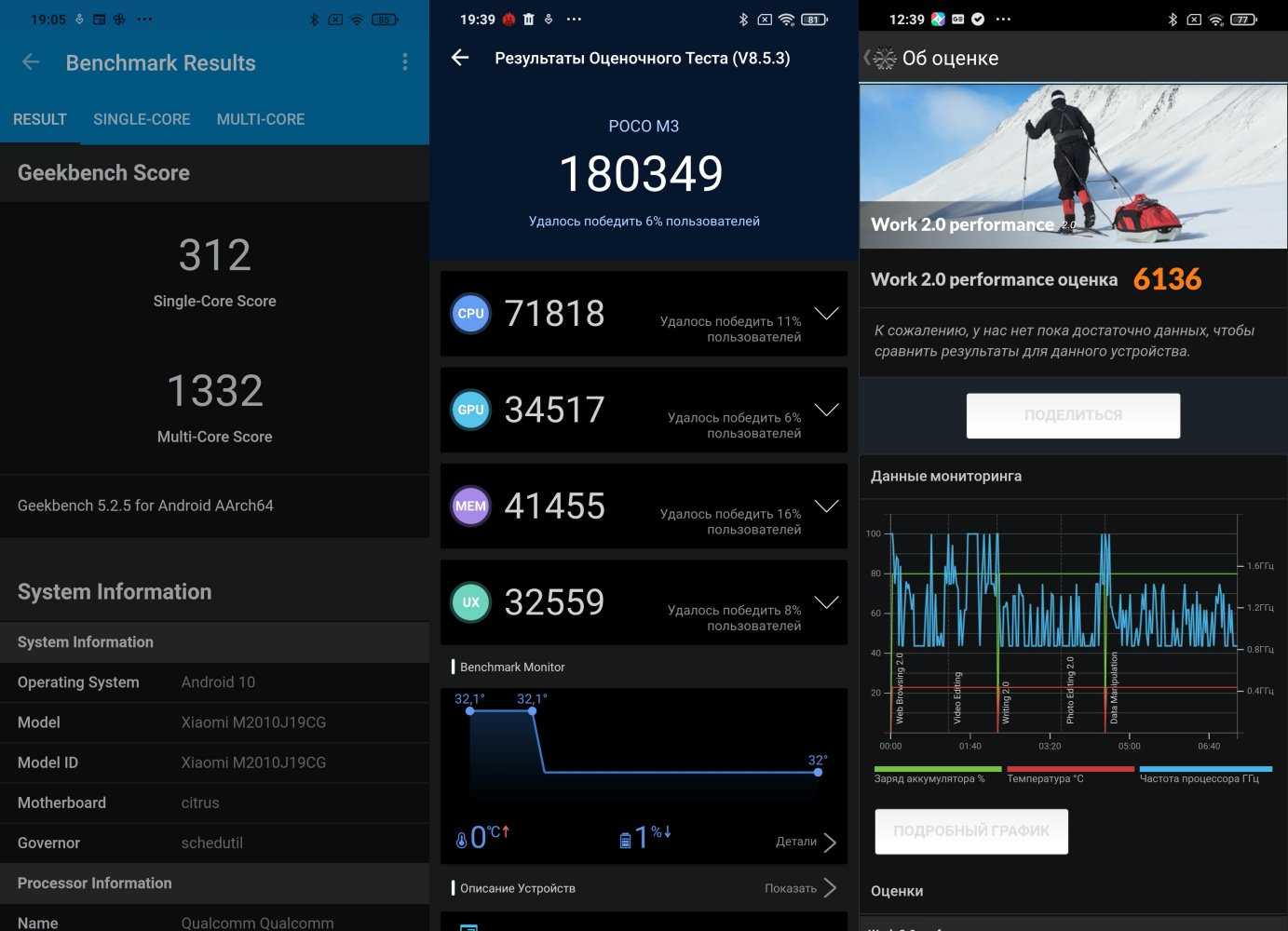 Начинка у Poco M3 прямо-таки вкусная: свежий Qualcomm Snapdragon 662, 4 ГБ оперативной и 64 либо 128 ГБ встроенной памяти. Для хранения фото, видео или музыки, если не любите стриминговые сервисы, можно использовать карту памяти.