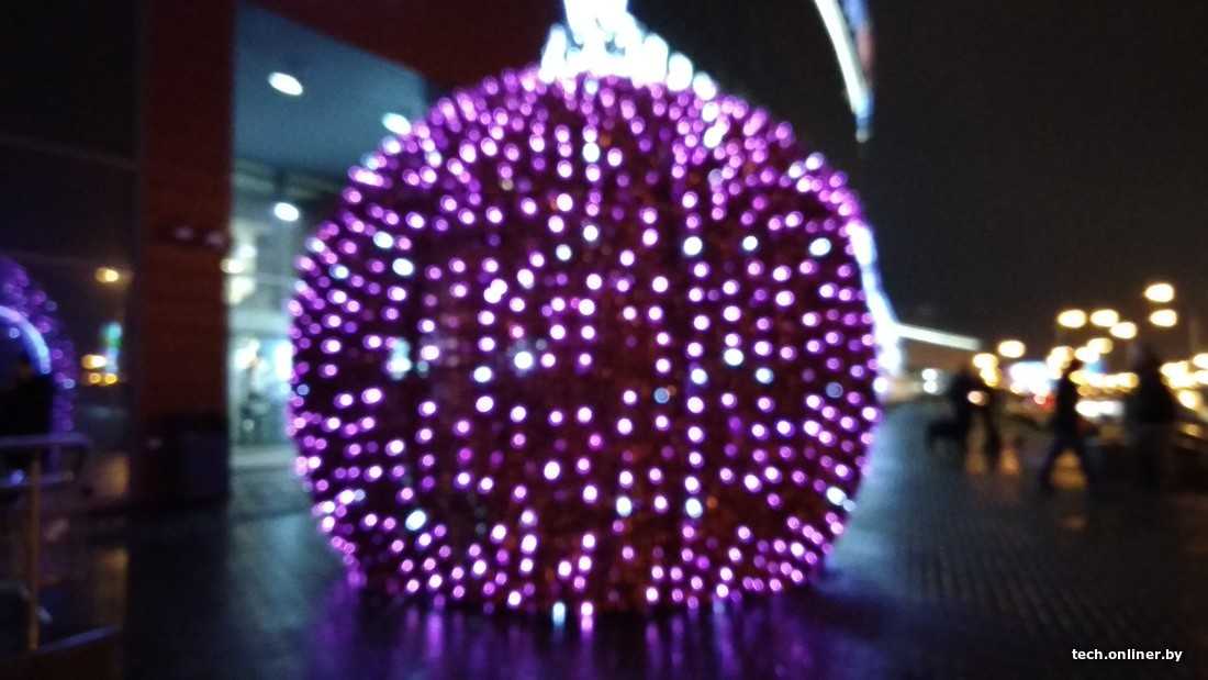 Хуже всего дела обстоят с фокусировкой. Более-менее четкий снимок вот этого большого новогоднего шара получился только с восьмой попытки. Все остальное время смартфон выдавал размазню. Проблема, скорее всего, носит программный характер, и, возможно, в будущих прошивках качество съемки подправят. Но пока фотовозможности новинок скорее разочаровывают, чем радуют.