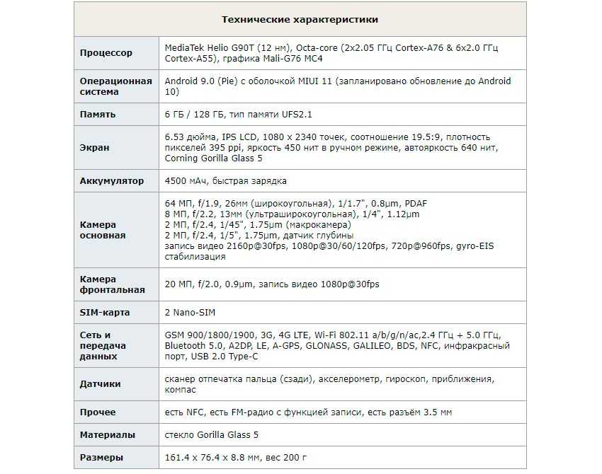 Детальные характеристики Redmi Note 8 Pro приведены на картинке.