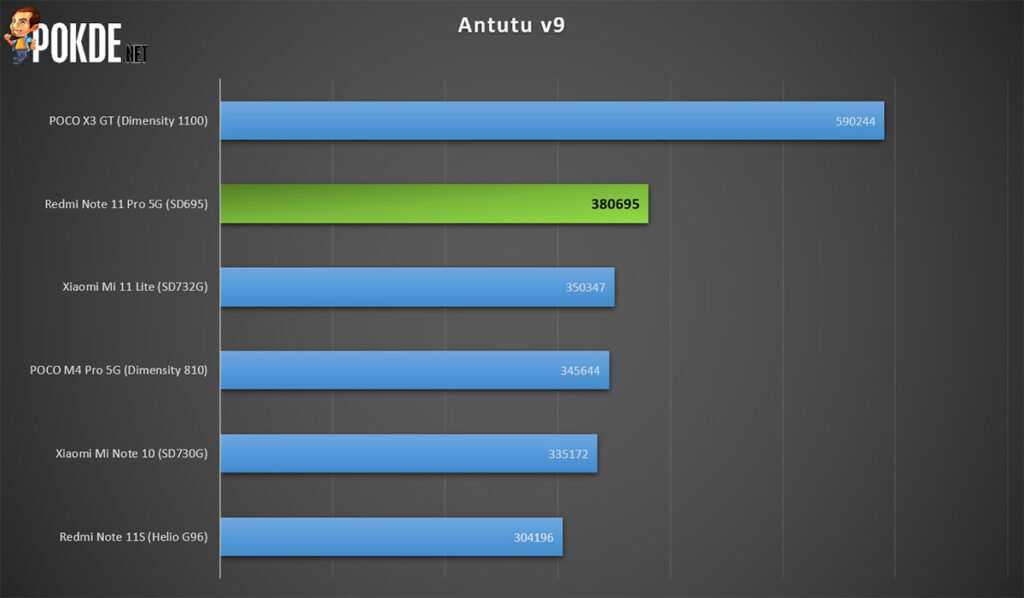Antutu sees the Redmi Note 11 Pro 5G outperform a number of other mid-range smartphones, although it falls a bit short of the upper mid-range POCO X3 GT. For anyone looking for a performant mid-range device, the Redmi Note 11 Pro 5G is a pretty decent option.