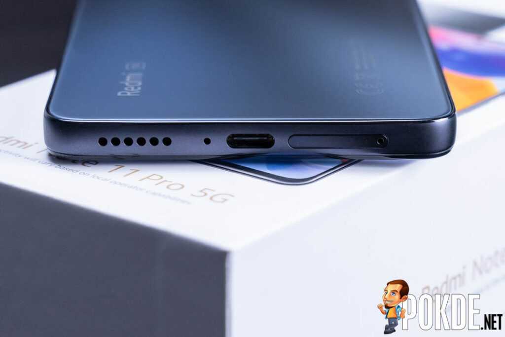Over on the bottom we have the SIM tray, USB-C port and also the primary loudspeaker. The Redmi Note 11 Pro 5G still retains a headphone jack over at the top, which is definitely an increasingly rare feature. Along with that you get the second half of the stereo speakers, as well as the IR blaster, yet another feature which I really appreciate but seems to be exclusive to Redmi and its sister brands by now, with every other brand dropping them for some peculiar reason.
