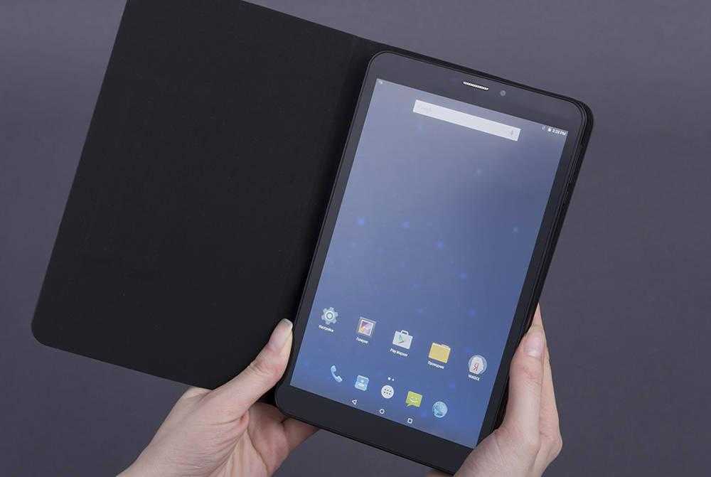 В комплекте с гаджетом поставляется специальный стилус, наушники, кабель OTG, чехол и плёнка. Корпус девайса выполнен таким образом, что его очень удобно удерживать и комфортно использовать. Габариты гаджета – 188х108х9,2 мм, вес – 283 г. В сочетании с удобным чехлом планшет можно легко использовать одной рукой, причём довольно долго. При этом чехол имеет мягкое внутреннее покрытие, что не позволит корпусу планшета или его дисплею поцарапаться.