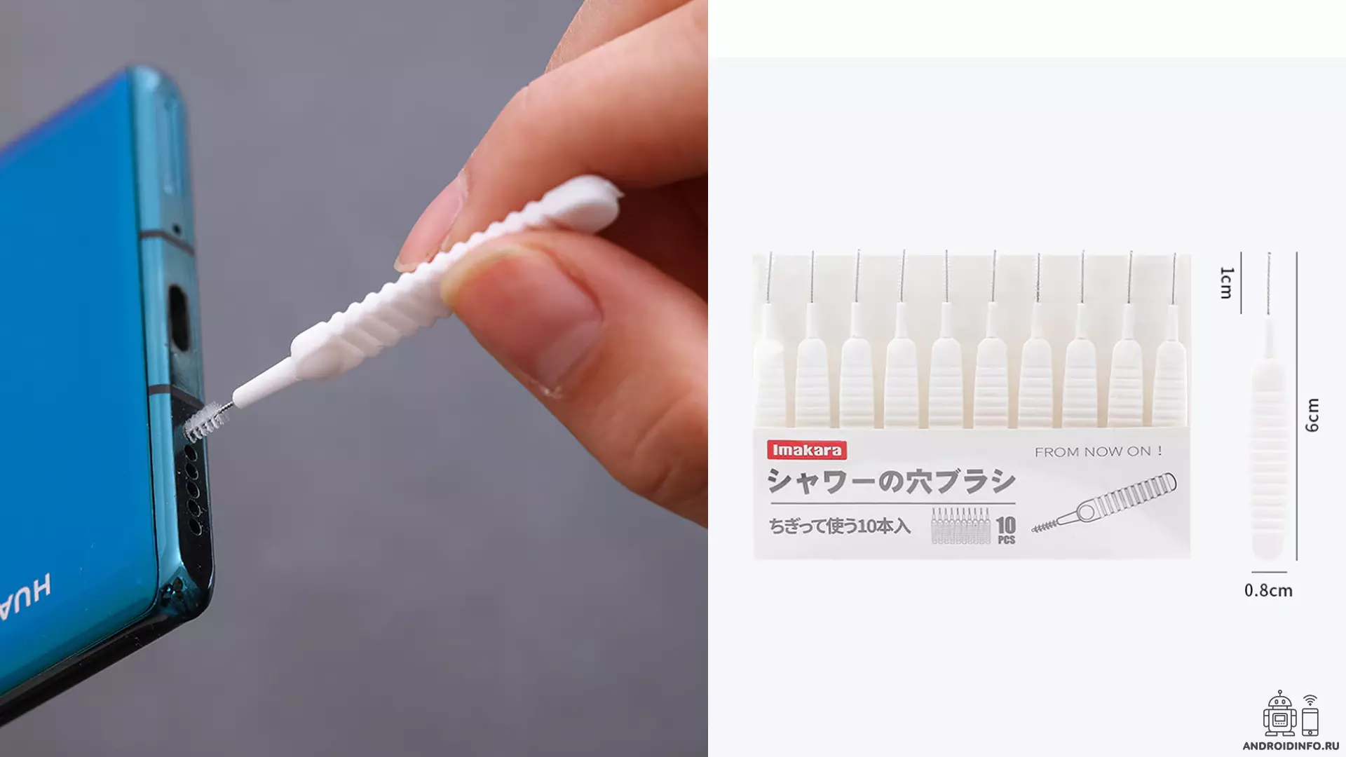 Помимо прочистки смартфона, аксессуар можно также использовать для проводных наушников и душевых леек.