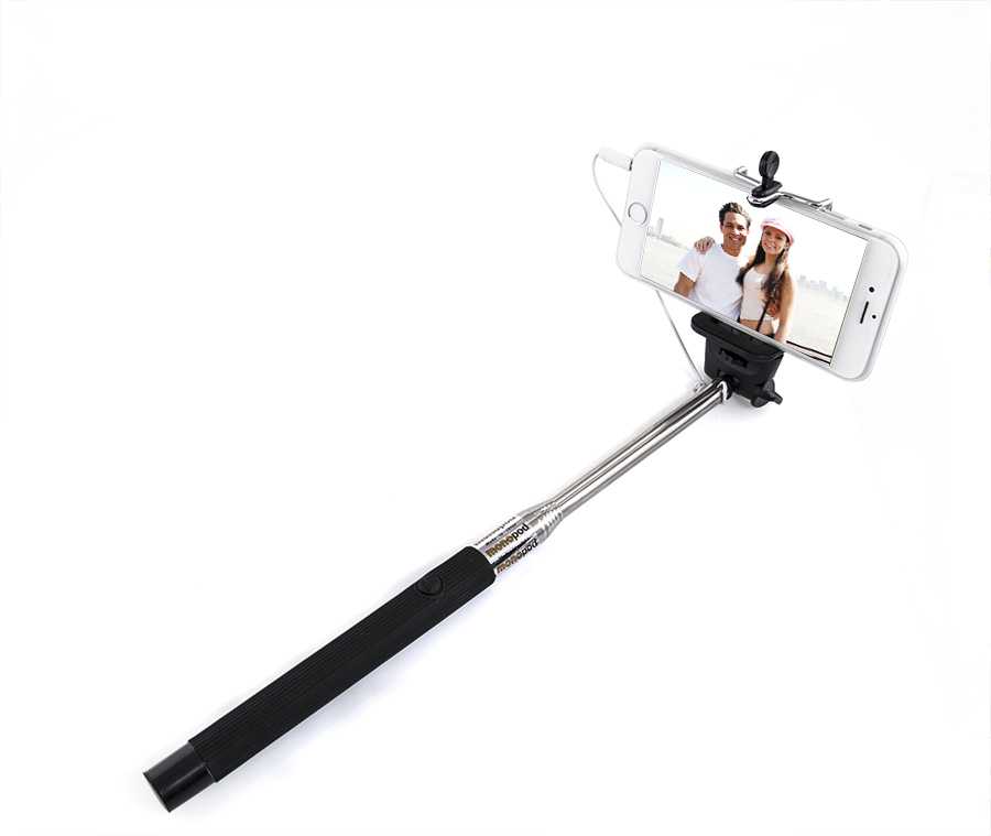 Селфи-палка проводного типа соединяется со смартфоном специальным проводом, который вставляется в разъем для наушников. Хотя конструкция выглядит более громоздкой, а провода могут повреждаться и часто нуждаются в замене, моноподы такого типа надежны в работе. Их функциональность не зависит от качества беспроводного соединения.