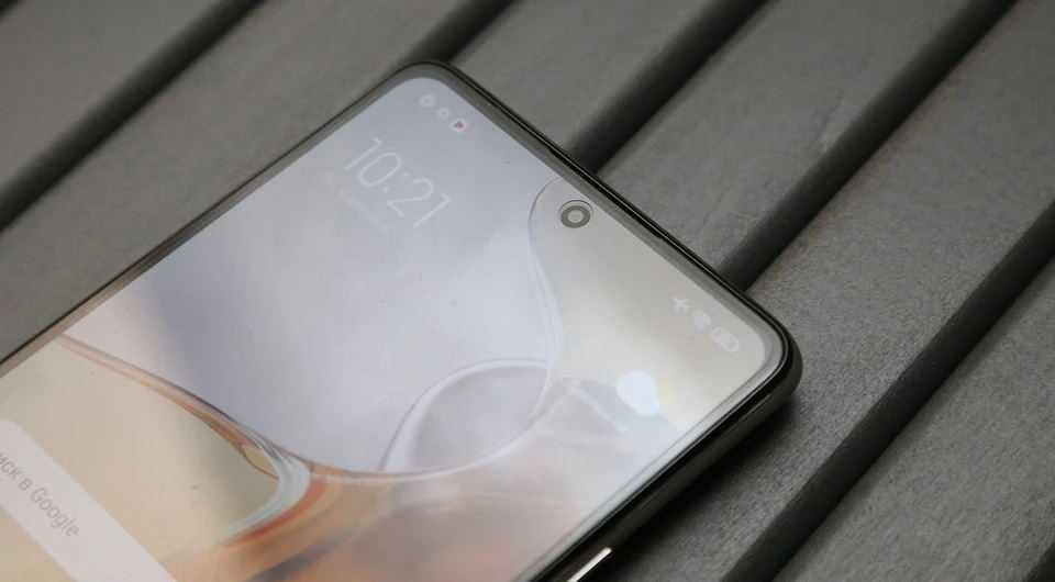 В верхней части дисплея присутствует отверстие под фронтальную камеру. Cлева и справа от выреза отображаются индикаторы работы сети, приложений, время и т.п. Если вам не нравится вырез, его можно скрыть. Делается это в пункте «Экран» — «Центр управления и строка состояния» — «Скрытие выреза». Здесь можно превратить вырез в чёрную полоску вверху — всё будет выглядеть так, словно у смартфона классический верхний отступ, поверх которого отображаются индикаторы и значки уведомлений.